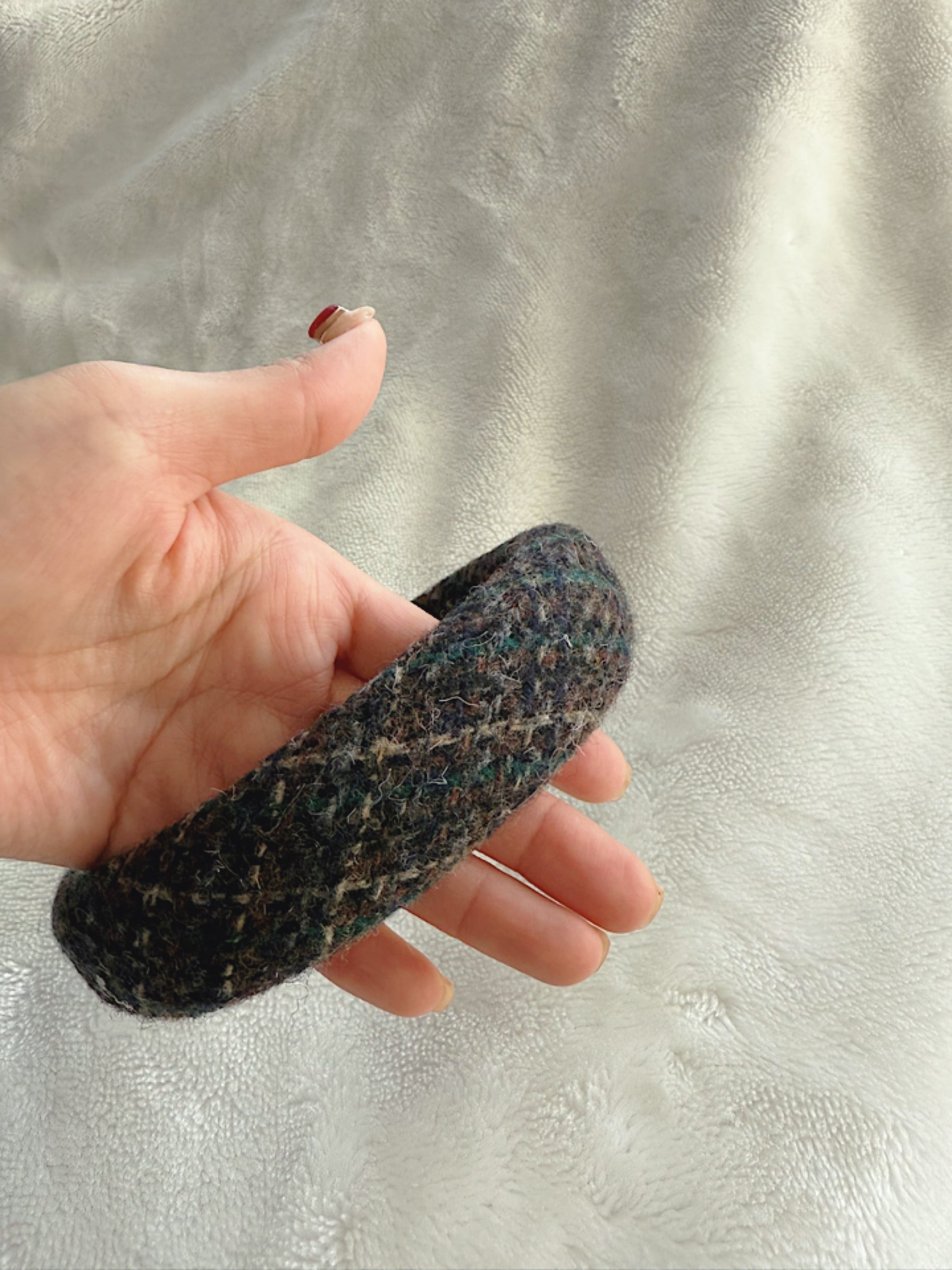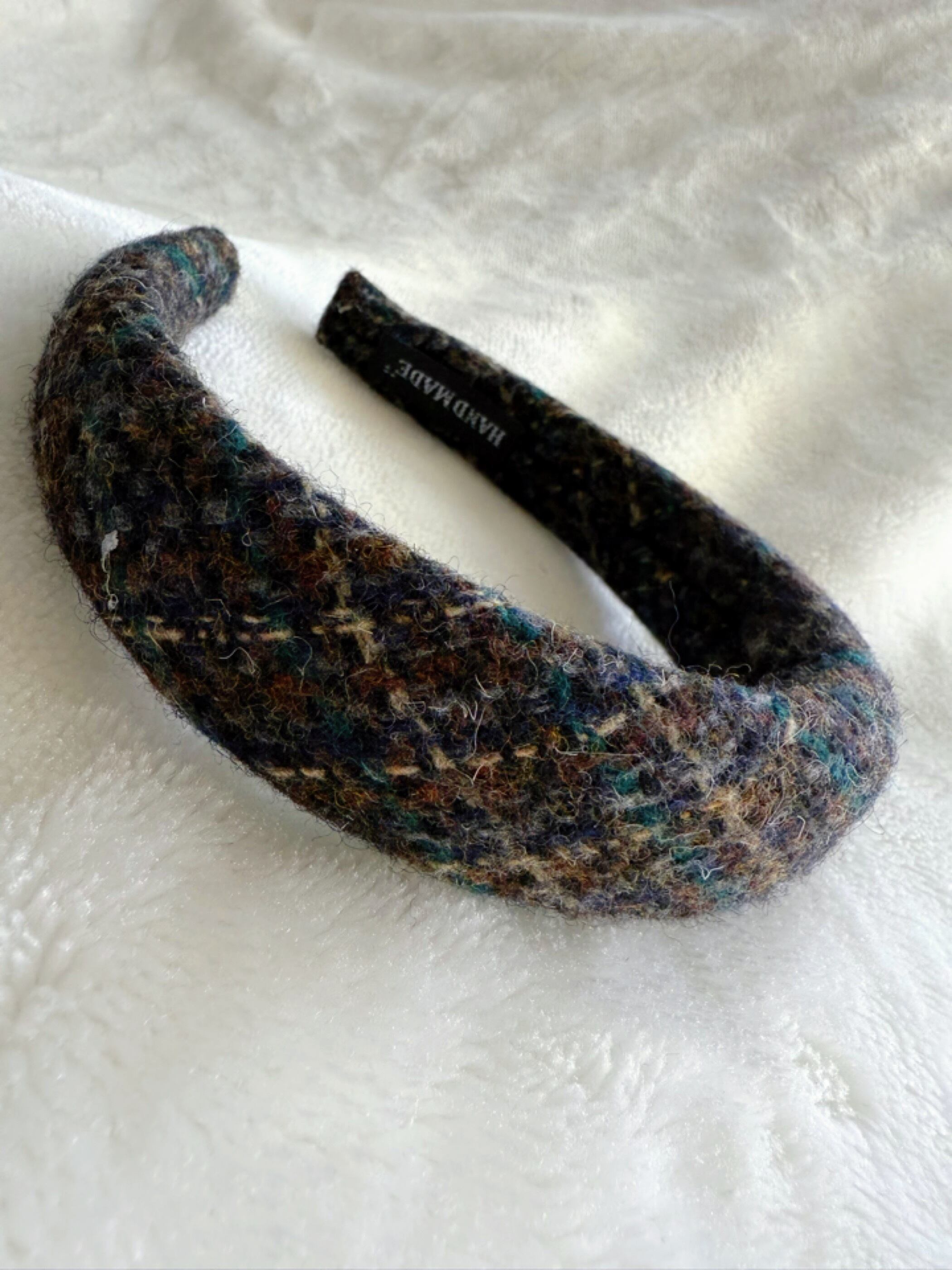 ウィンターツイードはネイビーブラウンホワイトブラックベージュなど色々な糸が織り込まれているのでお洋服選ばずつけれます、